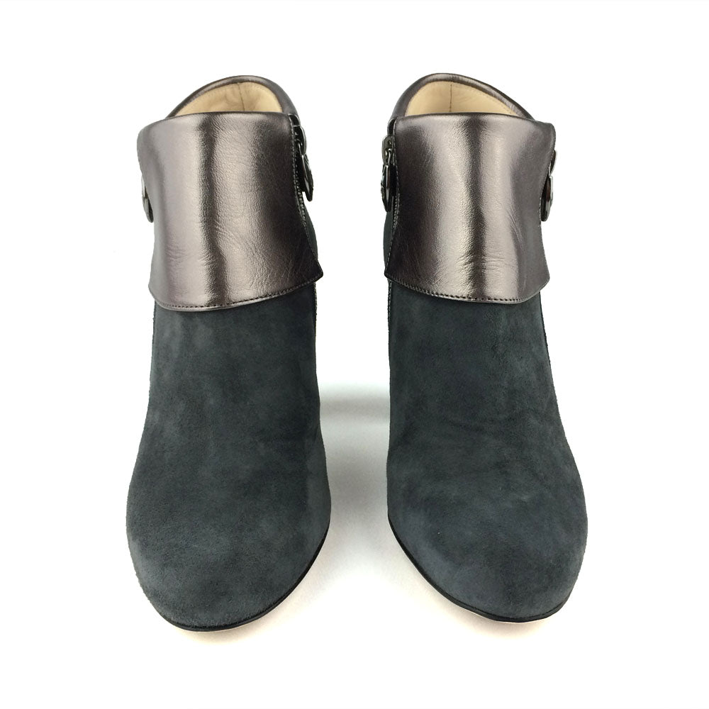 Brave the cold in style with these soft suede ankle boots with metallic finish and zipper on both sides for extra versatility.